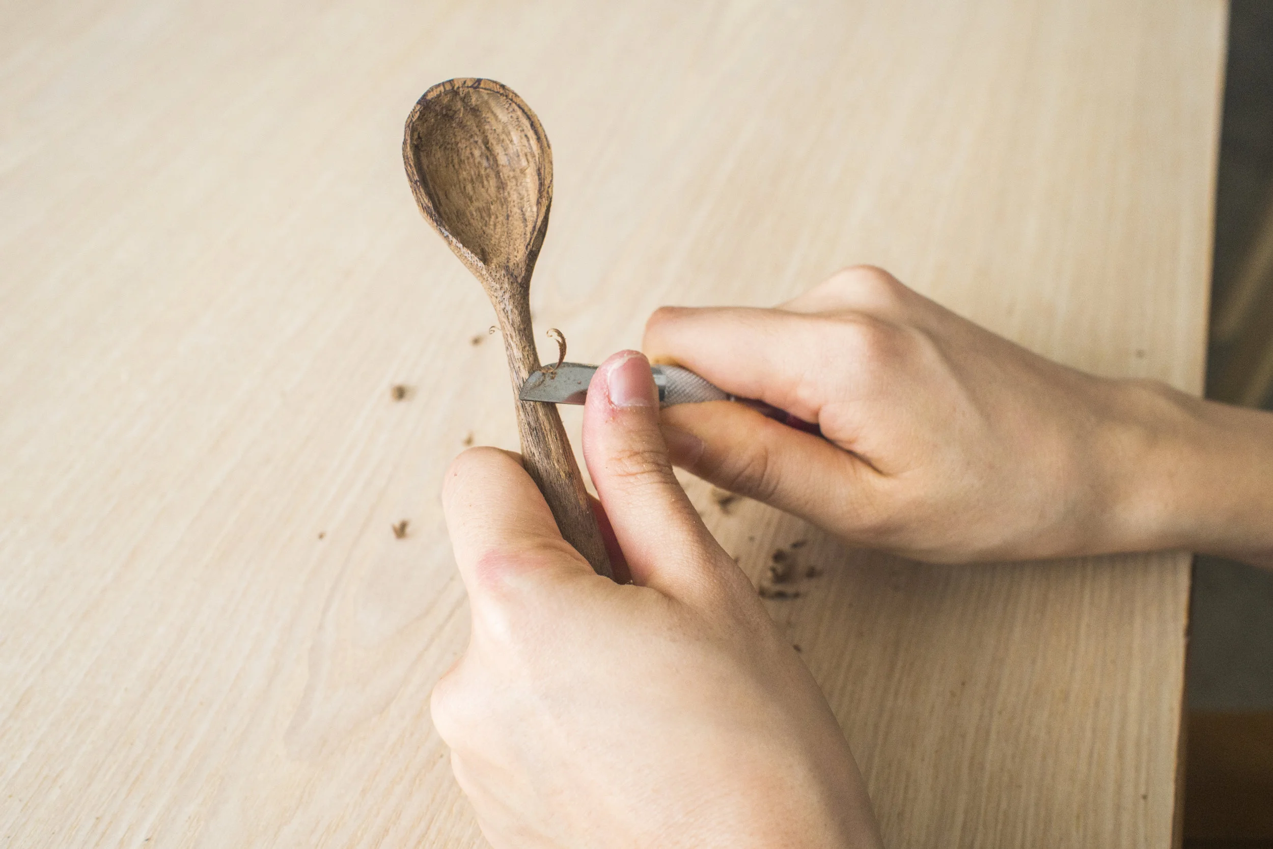 finished with a natural foodsafe coating and a small bottle of foodsafe oil to maintain the spoon.